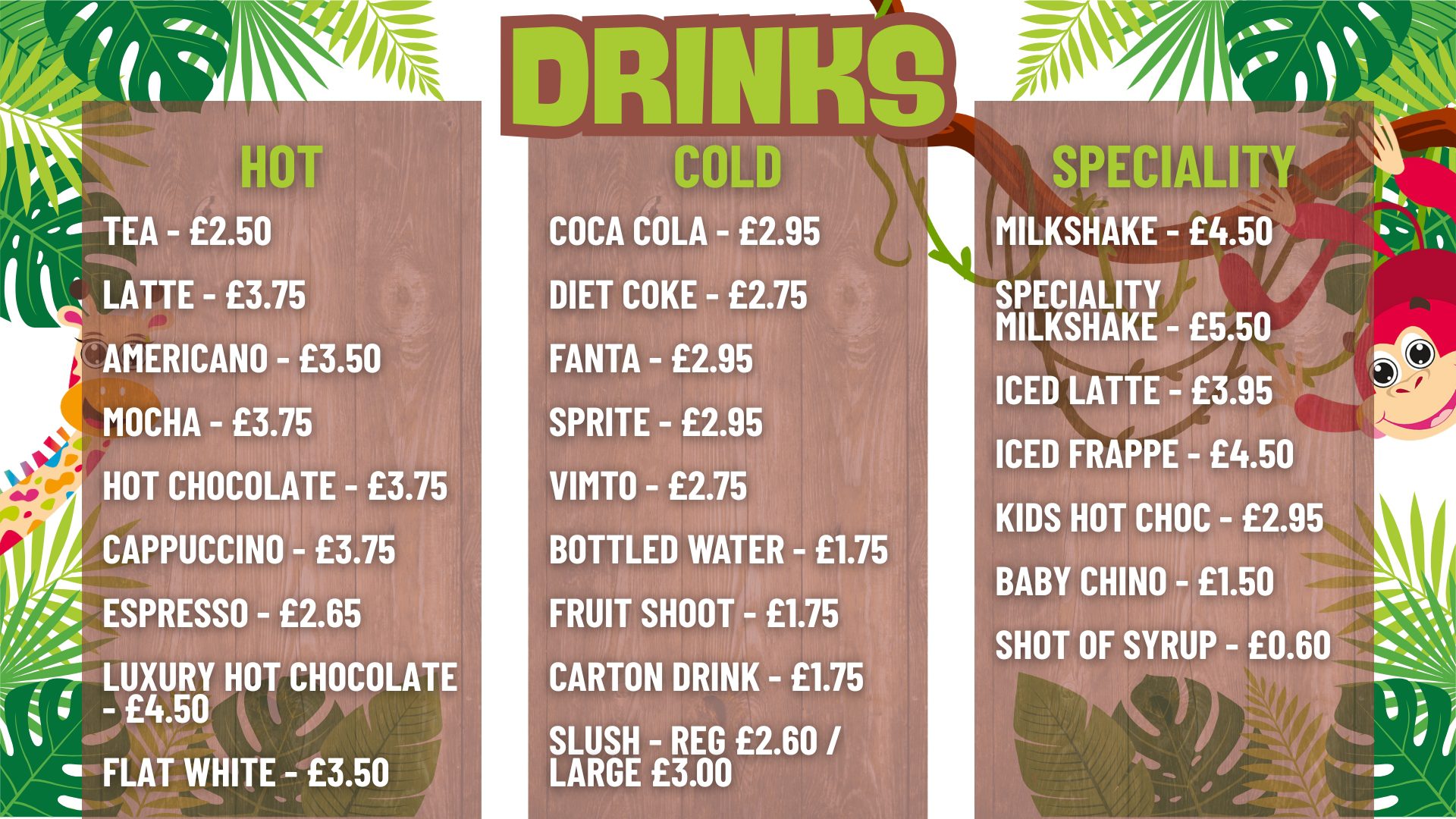 Grab a coffee, a bite to eat or feed the kids at “The Shack”. Our cafe is open daily serving delicious hot and cold food and drinks. Want to order? Simply choose from our menu, order and pay at “The Shack” and we will bring it over to your table.